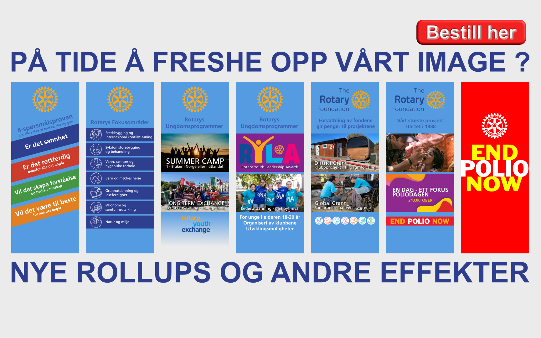 Nye Rollups, beachflagg og infokort om Rotary
